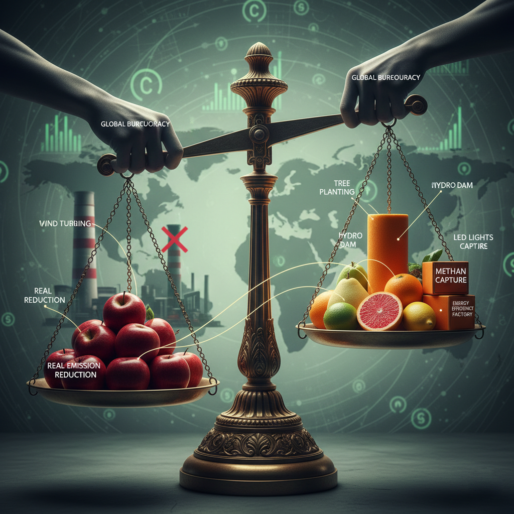 Membuat pabrik kimia lebih efisien tidak sama dengan memasok bola lampu hemat energi ke Jamaika. Menanam pohon tidak sama dengan menahan diri untuk tidak terbang ke Maladewa untuk berlibur. Namun semua hal ini perlu diverifikasi agar ‘setara secara iklim’ agar perdagangan kredit dapat berjalan.